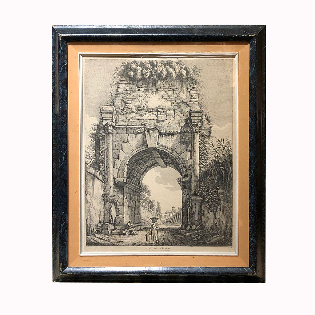 LUIGI ROSSINI ENGRAVING IN A BLUE FAUX MARBLE FRAME ARCO DI DRUSO 47 CM X 36 CM