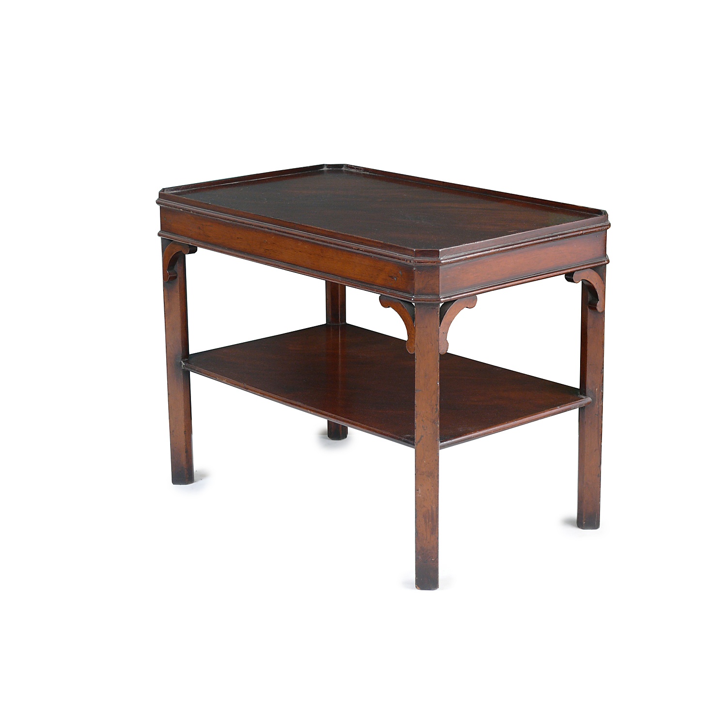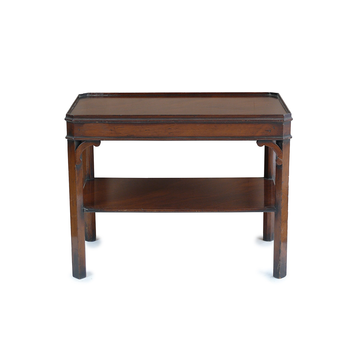 MAHOGANY LOW OBLONG TWO TIER OCCASIONAL TABLE CANTED CORNERS 1'10" HIGH X 2'3" WIDE X 1'4" DEEP 51CM X 69 CM 41CM