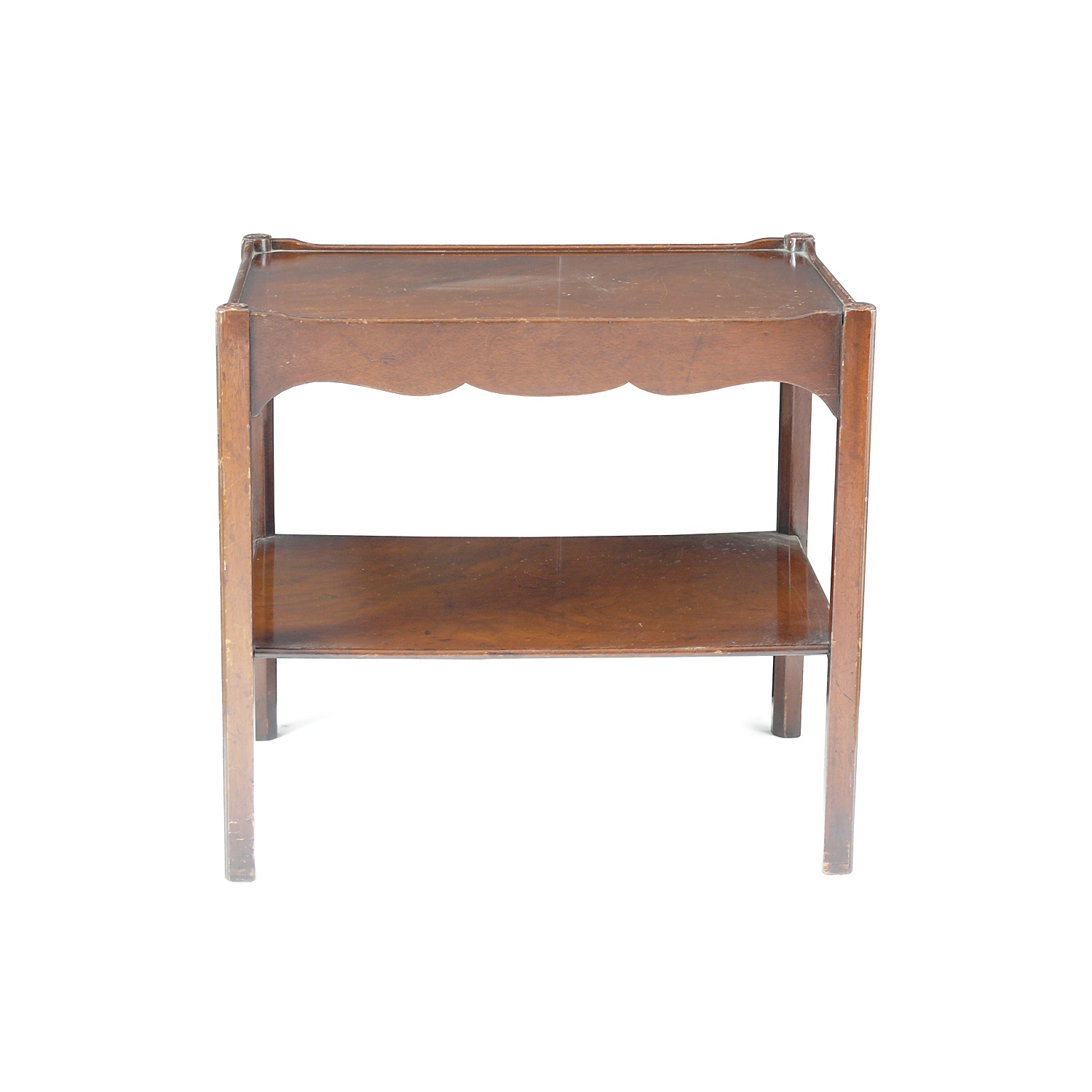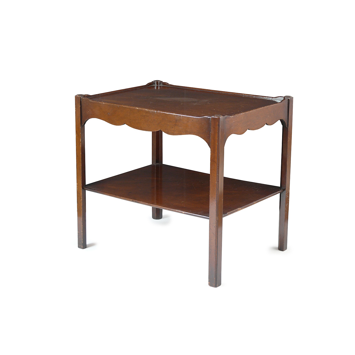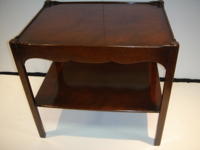 MAHOGANY OBLONG TWO TIER LOW OCCASIONAL TABLE ROSETTE CORNERS 58 CM LONG 43 CM DEEP 55 CM HIGH (X4)