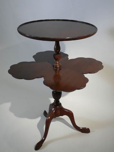 MAHOGANY TWO TIER TEA TABLE CLOVER SHAPE FIRST TIER 70 CM HIGH 43 CM DIAM