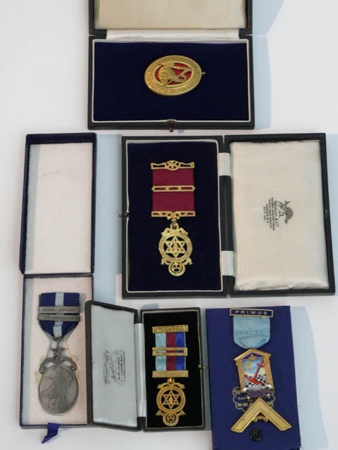 MASONIC MEDAL IN ORIGINAL LEATHER BOX (X5)