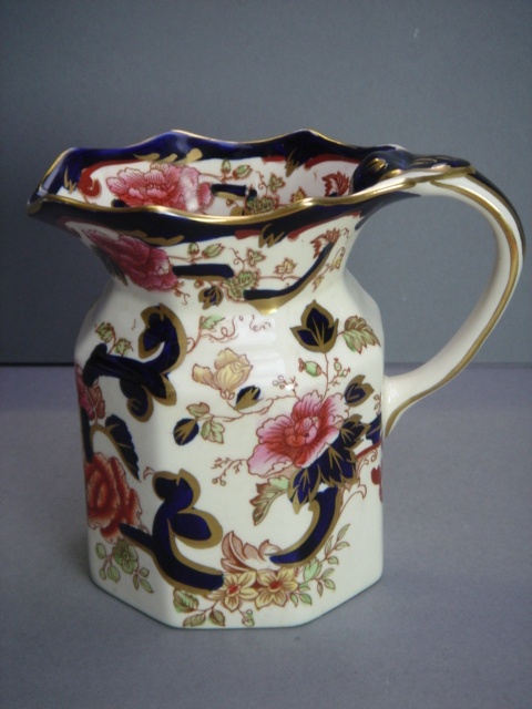 MASONS MANDALAY LARGE MILK JUG FLAT OCTAGONAL BASE PEONY FLOWER PAT.