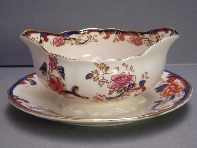 MASONS MANDALAY SAUCE DISH WITH FIXED STAND PEONY FLOWER PATT. (X2)