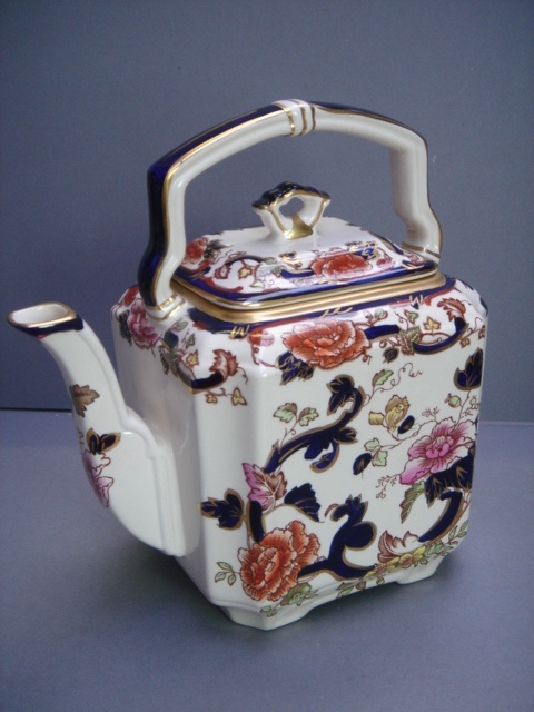 MASONS MANDALAY TEA KETTLE WITH LID PEONY FLOWER PAT.