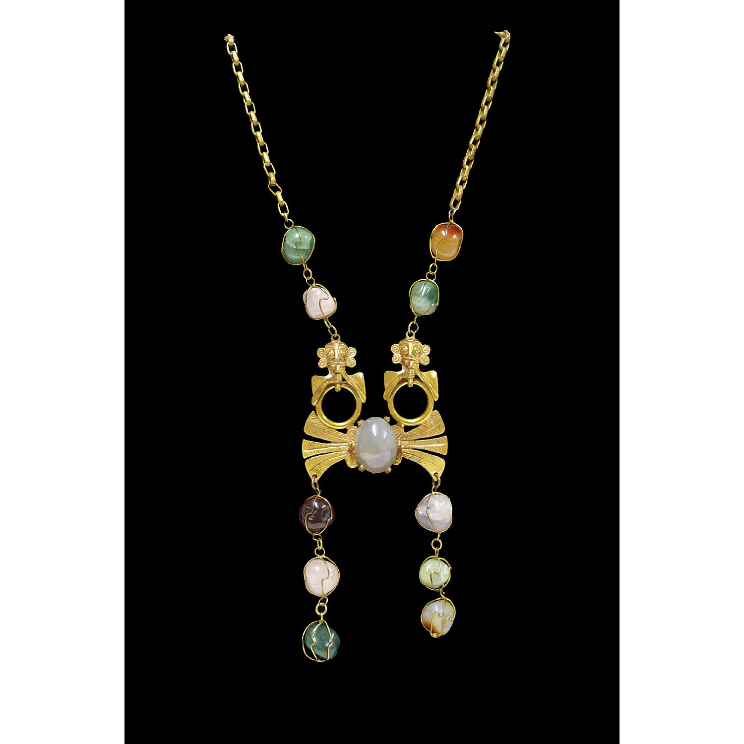 MAYAN AZTEC STYLE GOLD NECKLACE WITH NATURALISTIC STONE LINKS