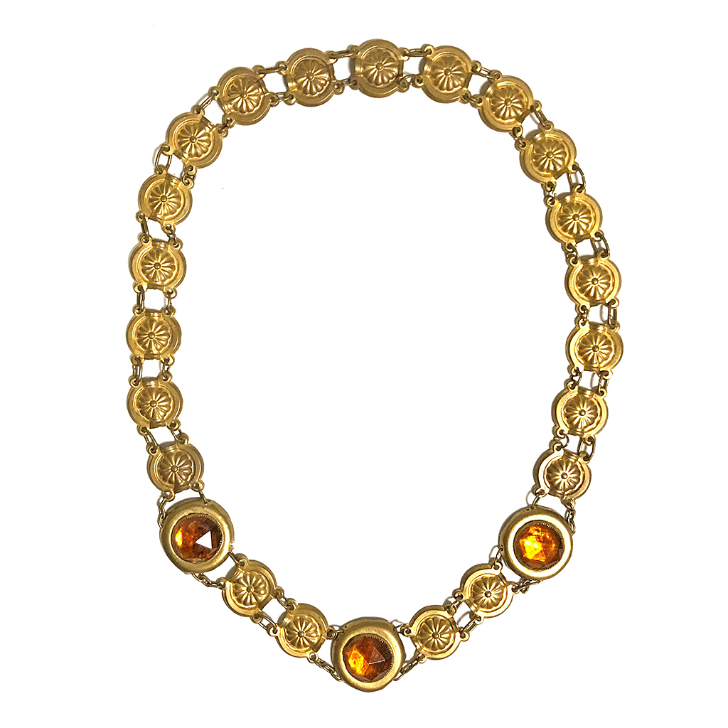 MEDIEVAL STYLE CEREMONIAL CHAIN GILT METAL WITH LARGE AMBER JEWELS