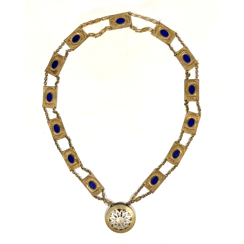 MEDIEVAL STYLE CEREMONIAL GOLD CHAIN INSET LOZENGES WITH CIRCULAR SHIELD PENDANT