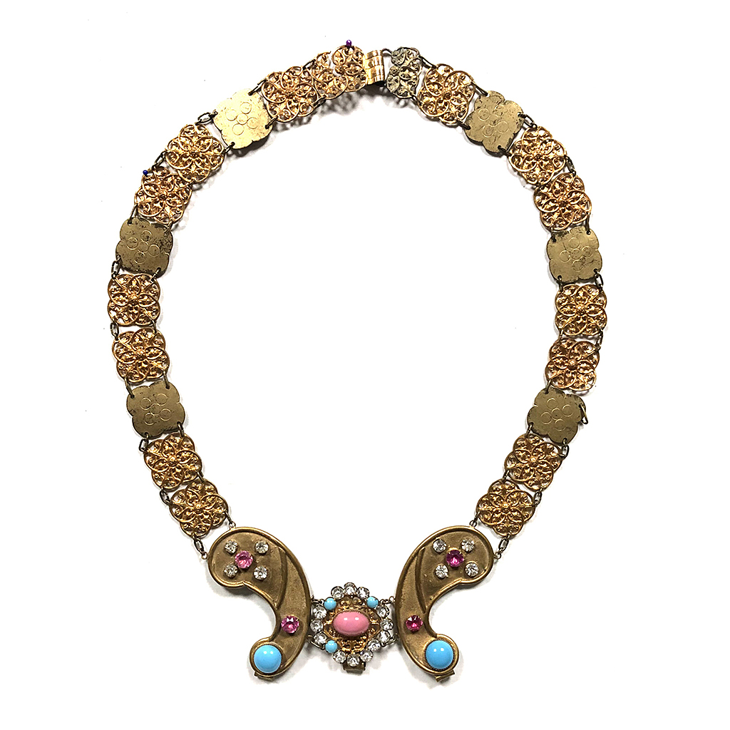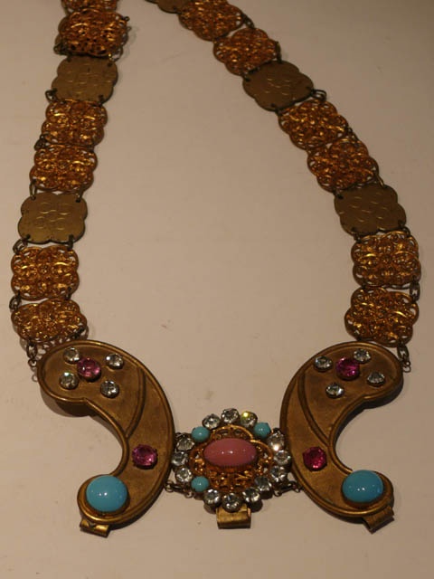 MEDIEVAL STYLE GOLD CEREMONIAL CHAIN TURQUOISE AND DIAMANTE JEWEL ENCRUSTED