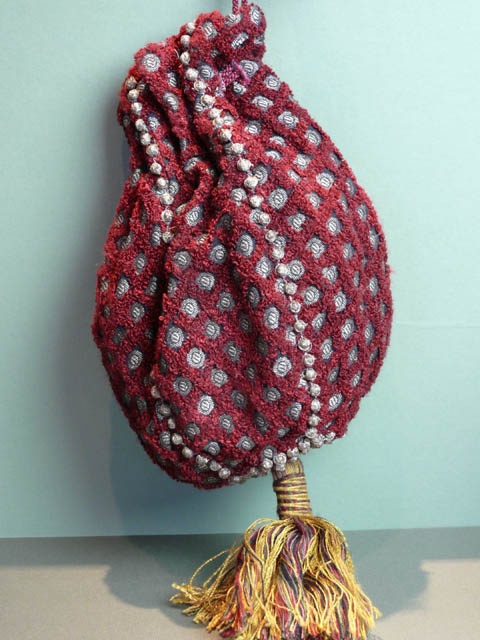 MEDIEVAL STYLE POUCH BAG CLARET AND GOLD CUT VELVET WITH TASSEL