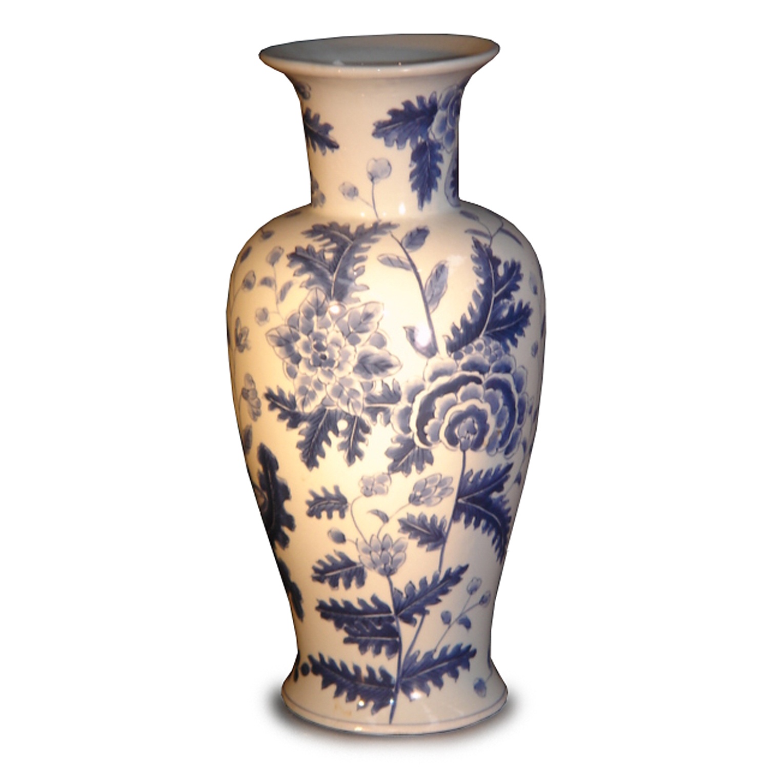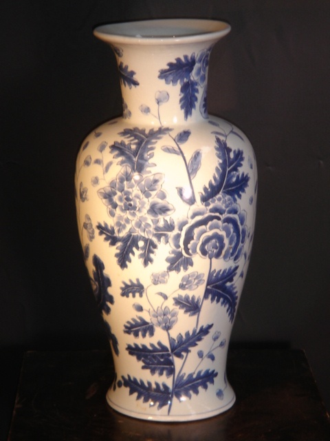 MEDIUM BLUE AND WHITE CHINESE VASE 13/i HIGH