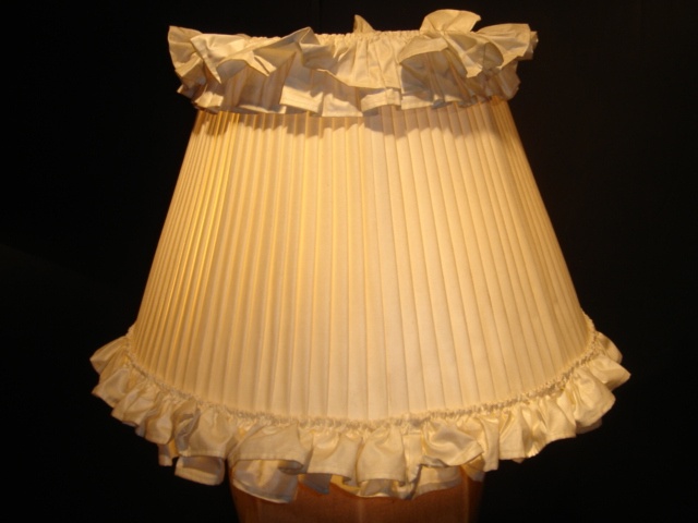 MEDIUM CREAM PLEATED LAMPSHADE WITH FRILL TOP AND BOTTOM