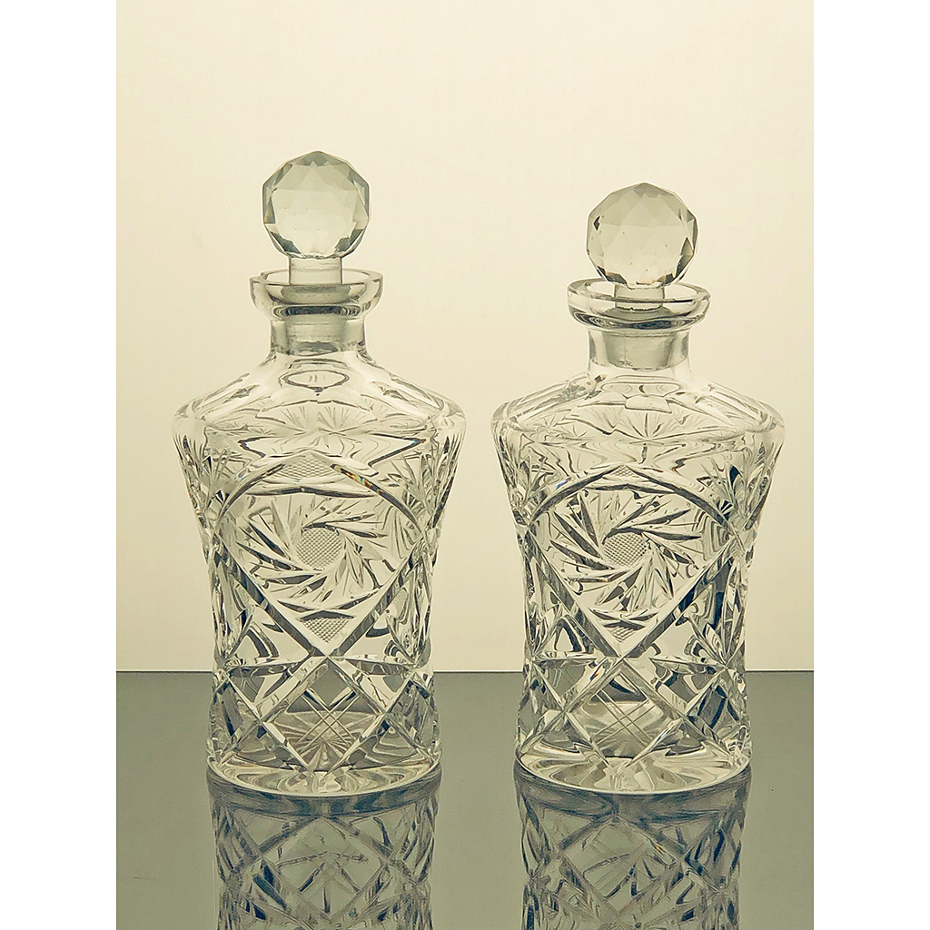 MEDIUM CUT GLASS TAPERING DECANTER AND STOPPER 22 CM HIGH (X2)
