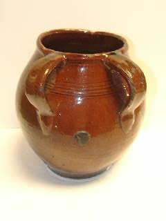 MEDIUM DARK BROWN GLAZED SPANISH 19TH CENT. JAR WITH TWIN HANDLES TO SIDE JAEN PROVINCE