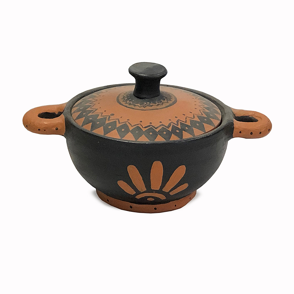 MEDIUM DECORATED GRECIAN BOWL WITH LID AND TWIN LOOP HANDLES 5" HIGH (X3)