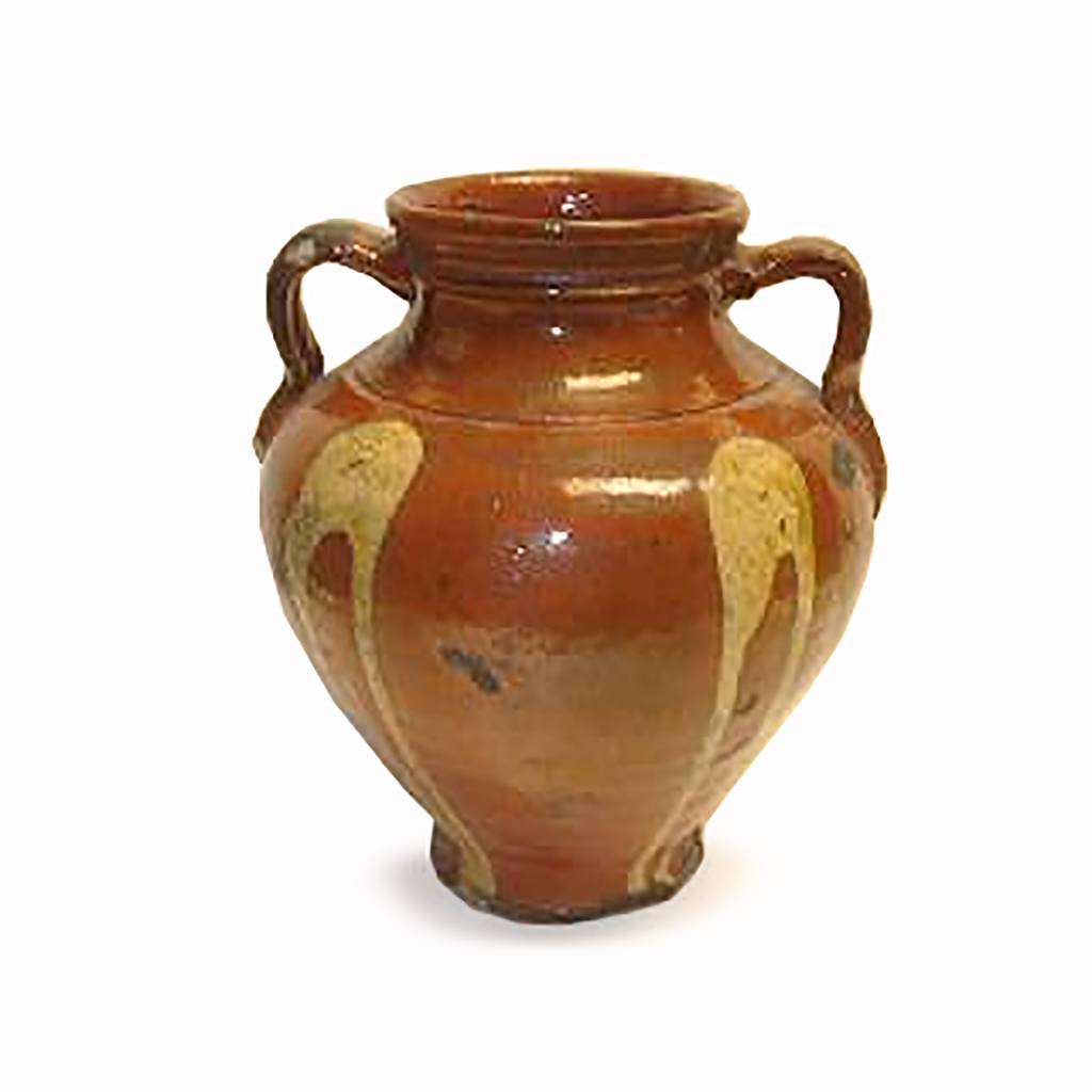 MEDIUM EARLY 18TH CENT. SPANISH SPLASH GLAZED JAR WITH LOOP HANDLES JAEN PROVINCE
