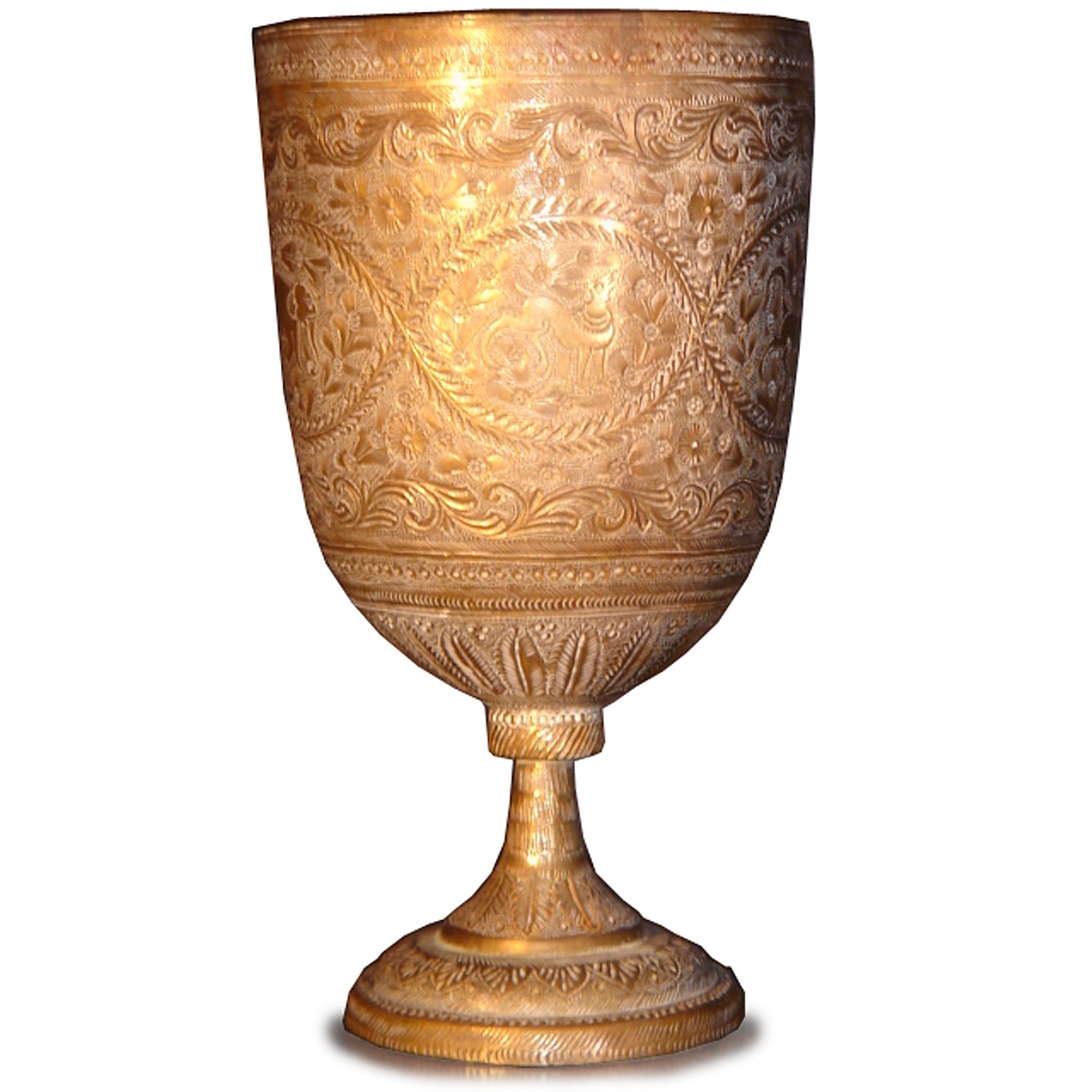 MEDIUM FINE ENGRAVED BRASS GOBLET / JARDINIERE INDIAN