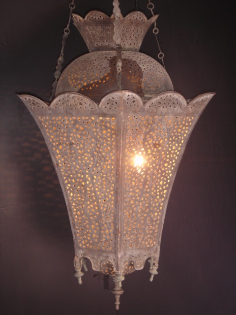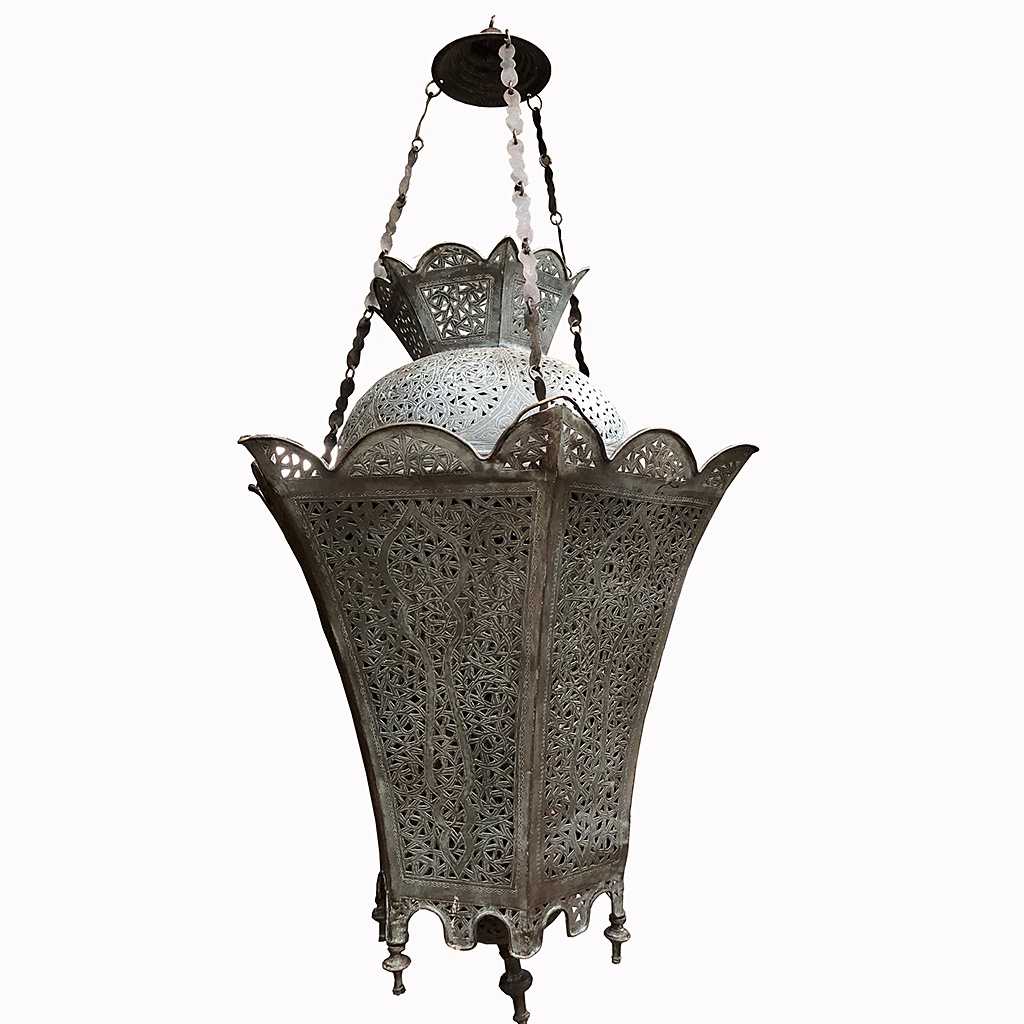 MEDIUM FLARED HEXAGONAL FRETTED BRONZE PENDANT LIGHT 2'6/i HIGH (X4)