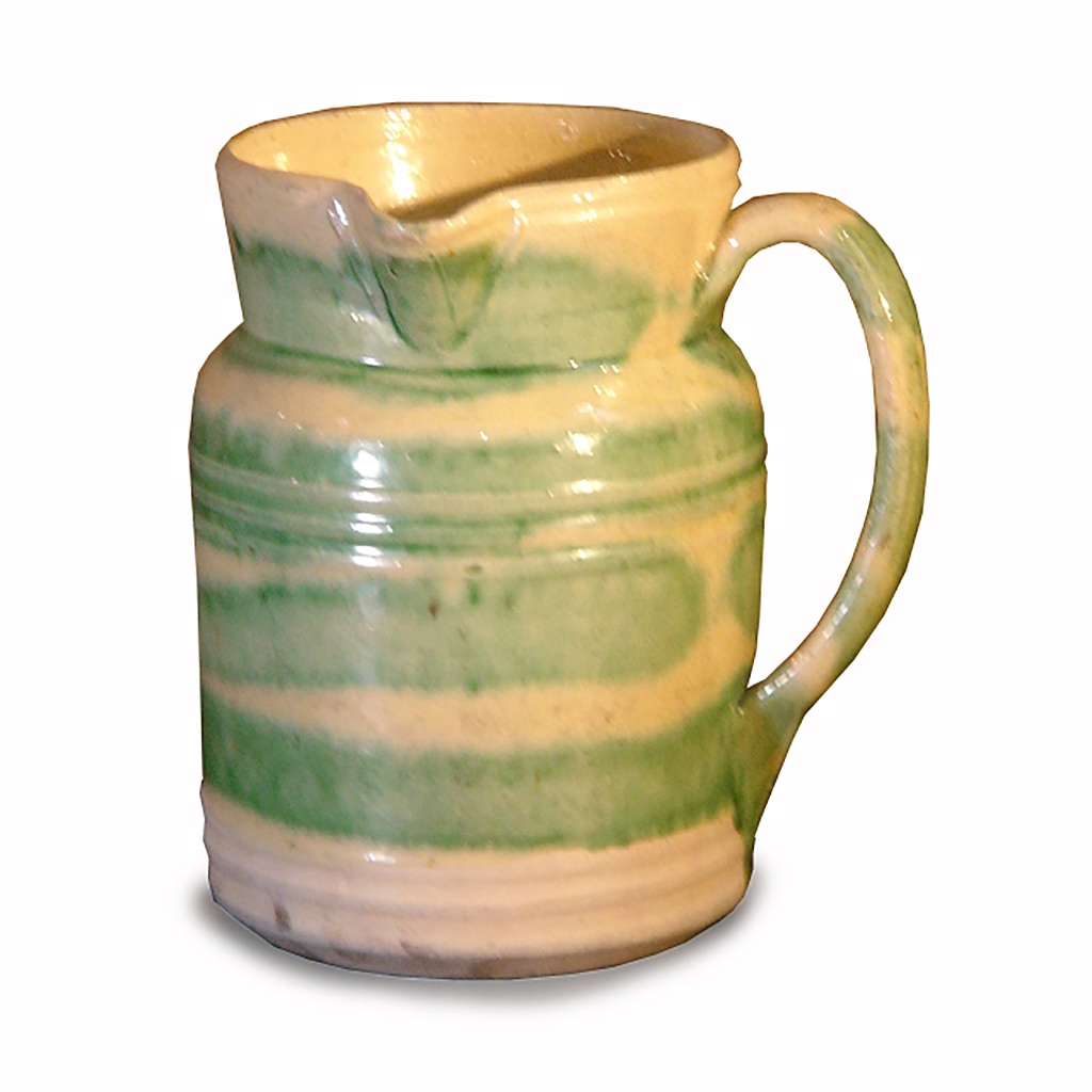 MEDIUM FRENCH PROVINCIAL GREEN SLIP GLAZED JUG 6/i HIGH 14 CM