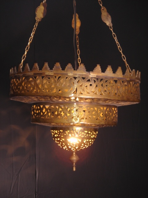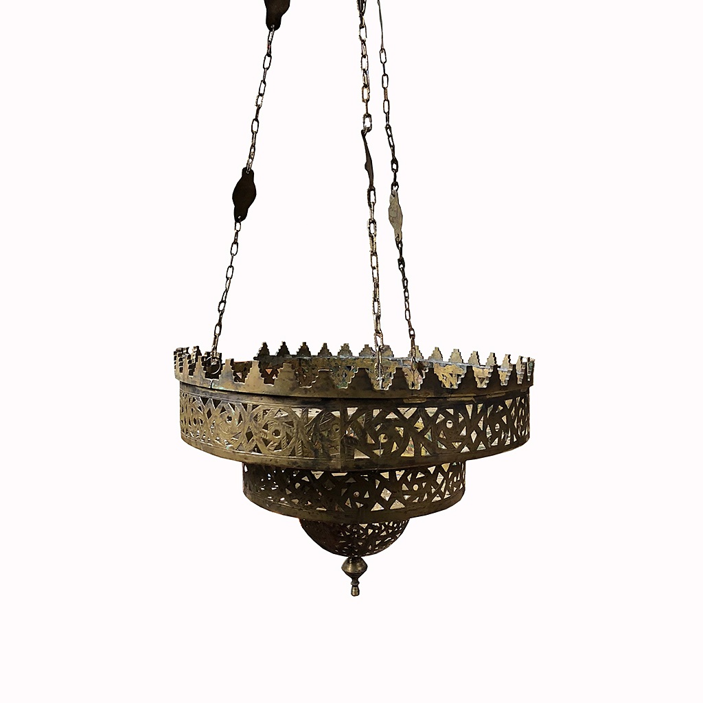 MEDIUM FRETTED BRASS MOROCCAN PENDANT LIGHT / LANTERN (X2)