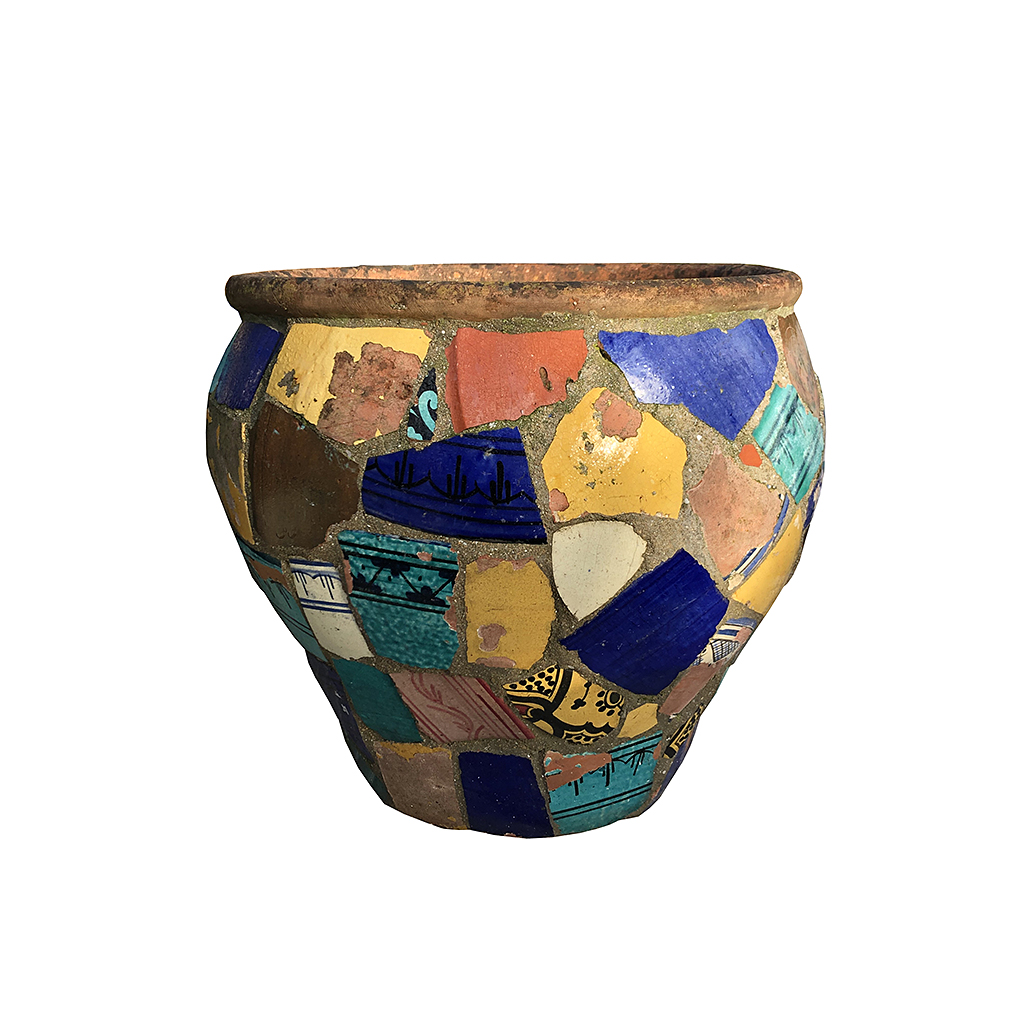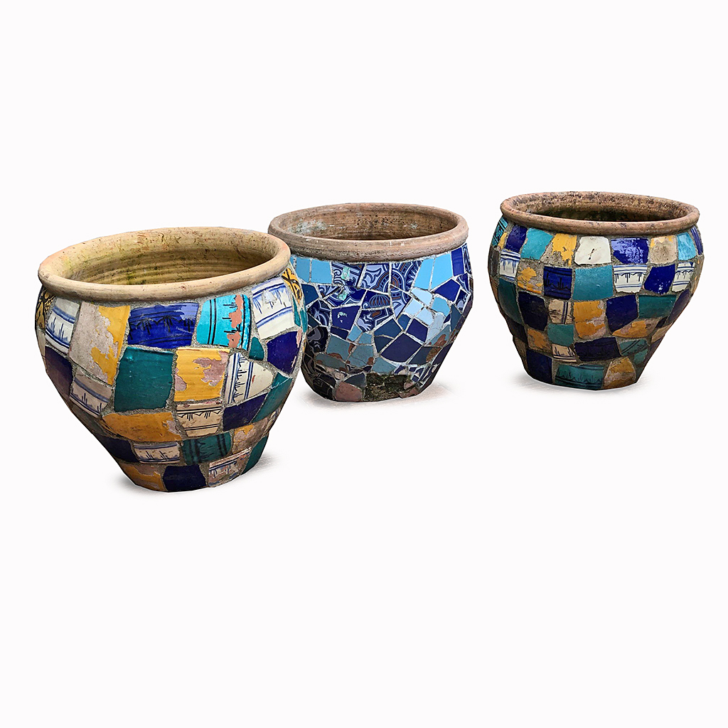 MEDIUM GAUDI STYLE TILE MOSAIC GARDEN URN / TUB 37 CM HIGH 41 CM DIAM (X3)
