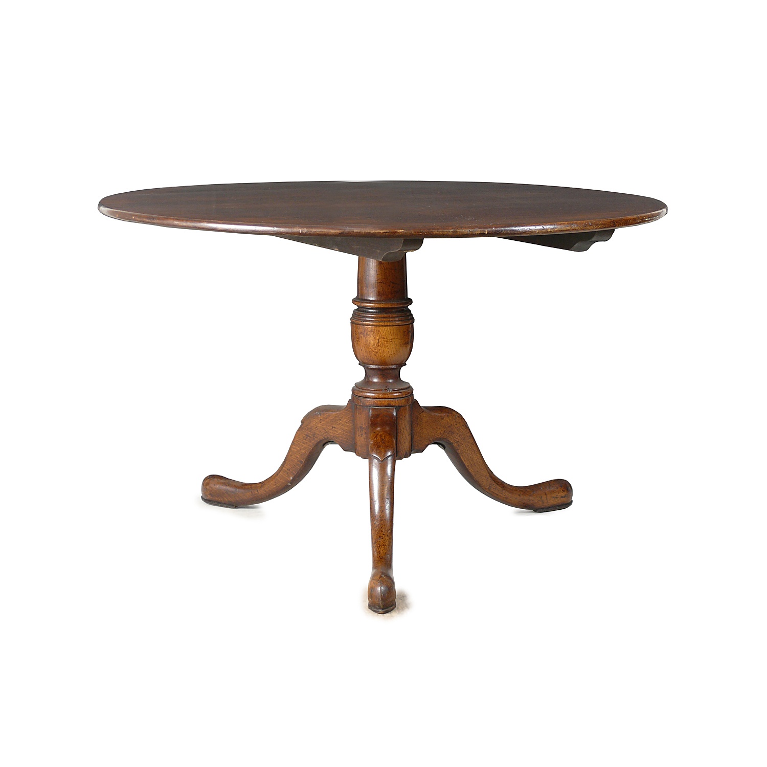 MEDIUM GEORGIAN DINING TABLE OAK CIRCULAR TOP ON PEDESTAL BASE 4' DIAM