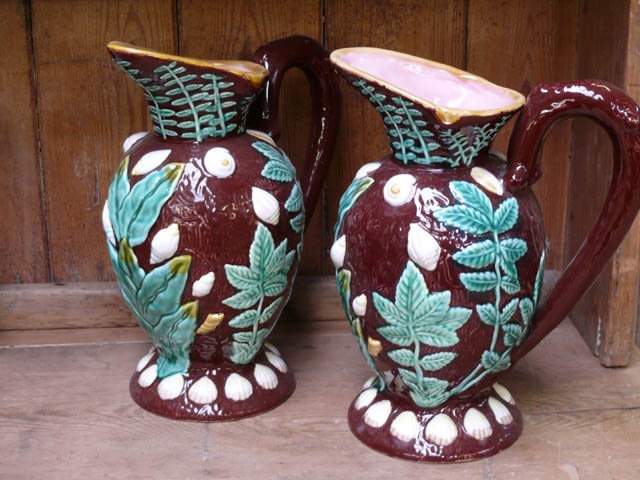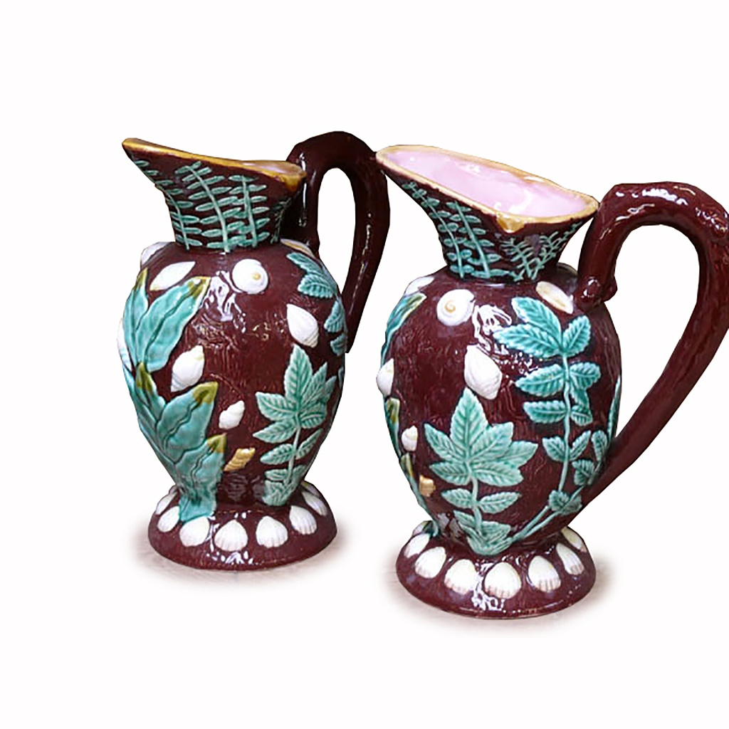 MEDIUM GREEN AND BROWN MINTON JUG LEAF PATTERN (X2)