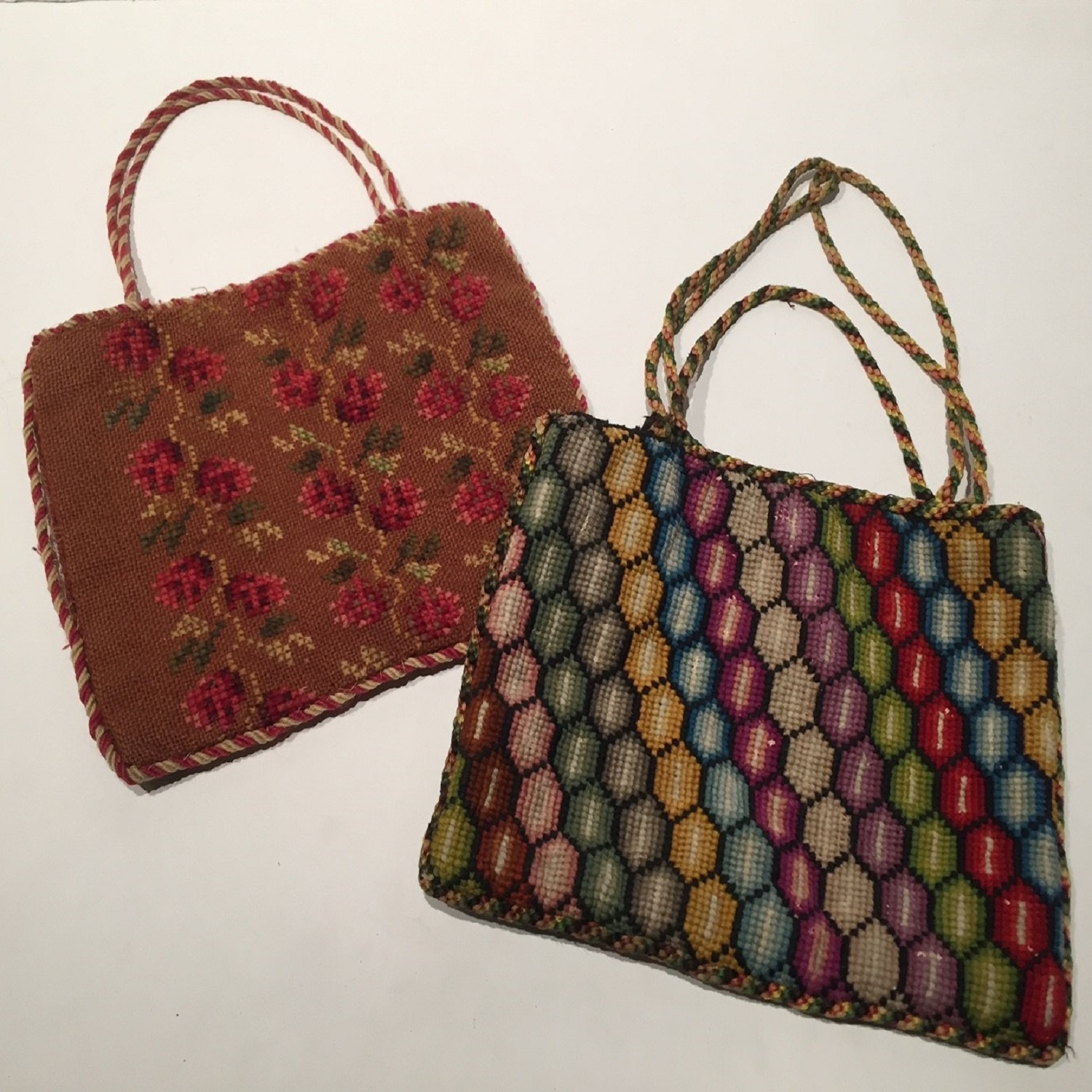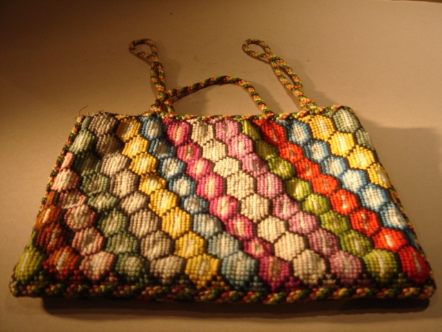 MEDIUM GROSS POINT NEEDLEWORK HANDBAG 22 CM WIDE