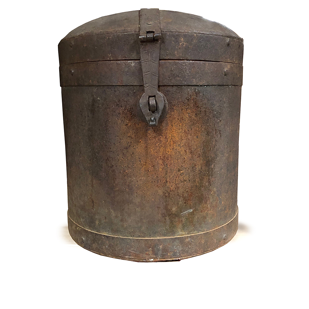 MEDIUM HEAVY IRON MILK CHURN / BARREL WITH DOMED LID 37 CM HIGH 29 CM DIAM