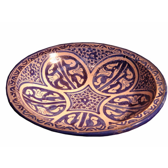 MEDIUM MOORISH BOWL 15 DIAM. ORNATE BLUE AND WHITE PATTERN
