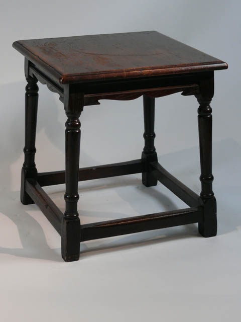 MEDIUM OAK JOINT STOOL / OCCASIONAL TABLE WITH SPLAYED TURNED LEGS 60 CM HIGH X 59 CM WIDE X 59 CM DEEP