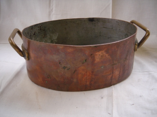 MEDIUM OVAL SHALLOW TWO HANDLE COPPER PAN