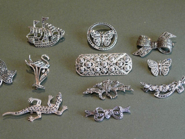 MEDIUM / SMALL SILVER MARCASITE BROOCH