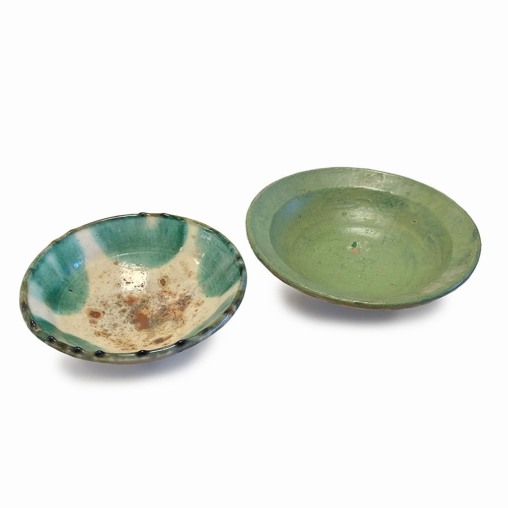 MEDIUM SPANISH RUSTIC GLAZED GREEN PLATE / DISH / BOWL 20 CM DIAM