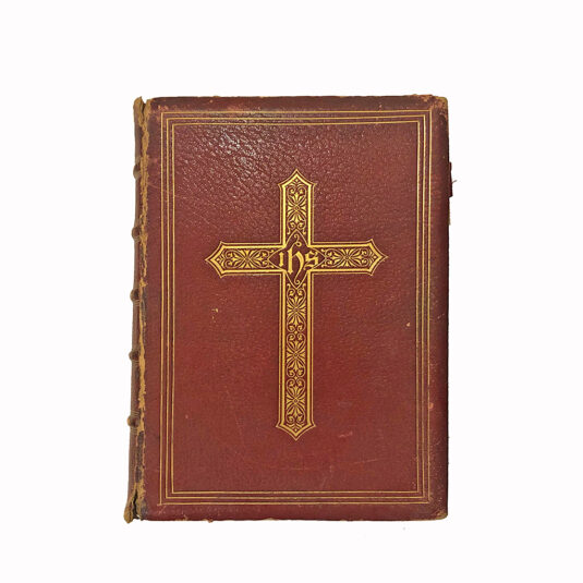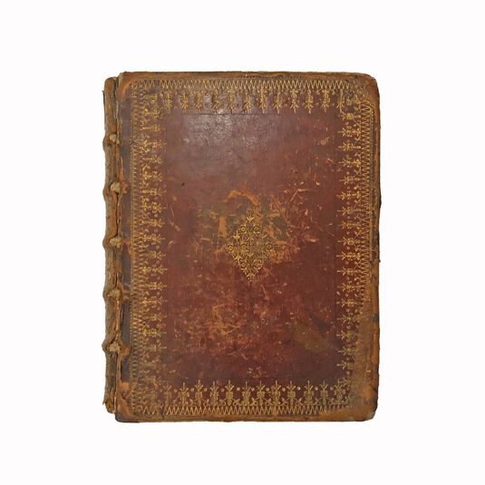 MEDIUM TAN LEATHER ALBUM BOOK WITH GILT METAL CLASP