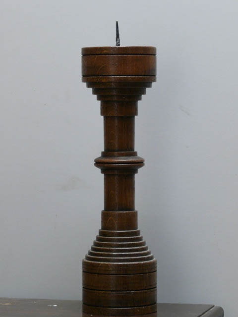 MEDIUM TURNED OAK CANDLE PRICKET ANGLO - FRENCH 39 CM HIGH (X2)