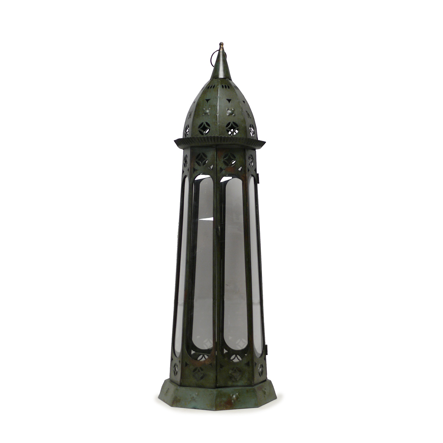 MEDIUM SLIM GREEN PAINTED IRON LANTERN HEXAGONAL LIGHTHOUSE TYPE 93 CM HIGH (X5)
