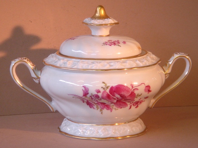 MEISSEN PINK AND WHITE FLORAL PATTERN SUGAR BOX AND LID