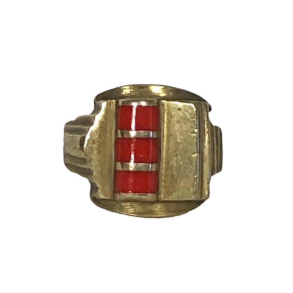 MEN'S ART DECO BRASS RING SQUARE WITH CORAL BAND DECORATION