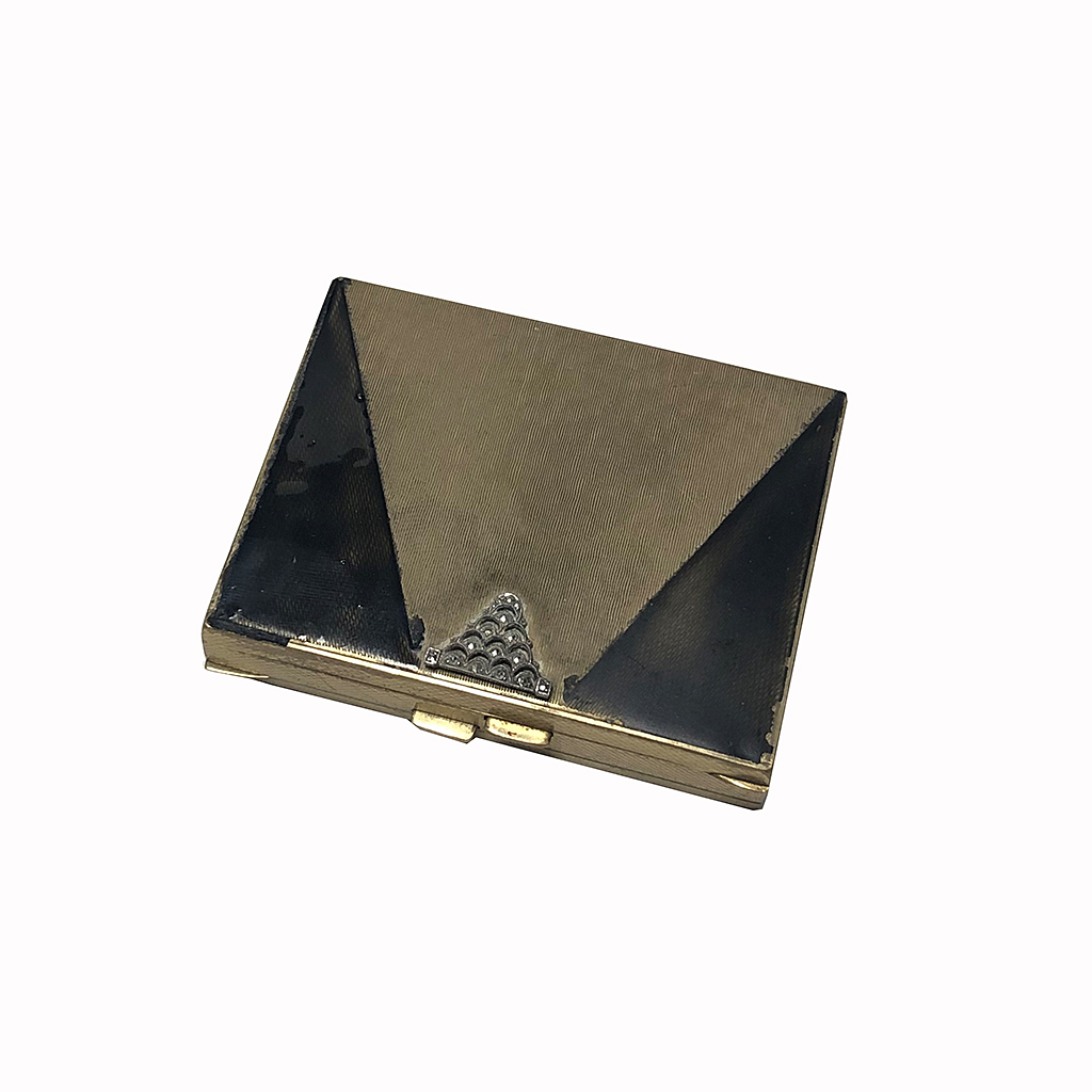 METAL COMPACT / CIGARETTE CASE WITH ENAMEL CORNERS AND MARCASITE DECORATION