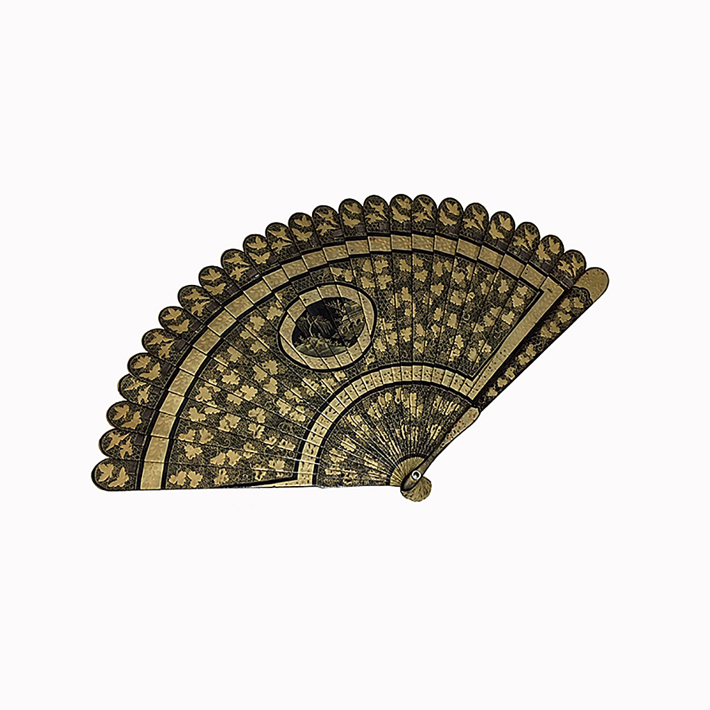 MID-VICTORIAN JAPANESE STYLE BLACK AND GOLD LACQUERED BRISE FAN