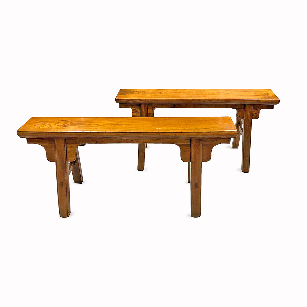 MING DYNASTY STYLE CHINESE LIGHT TEAK BENCH 52 CM HIGH 107 CM LONG 34 CM DEEP (X2)