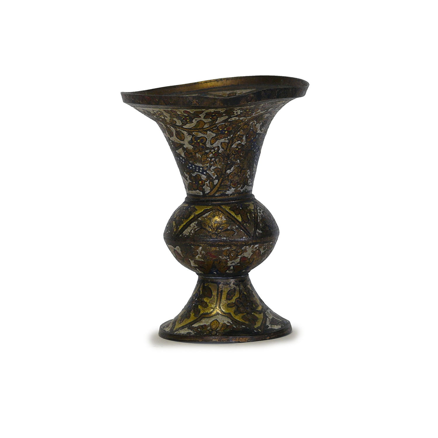MINIATURE EASTERN PAINTED BRASS CANDLESTICK 5" HIGH