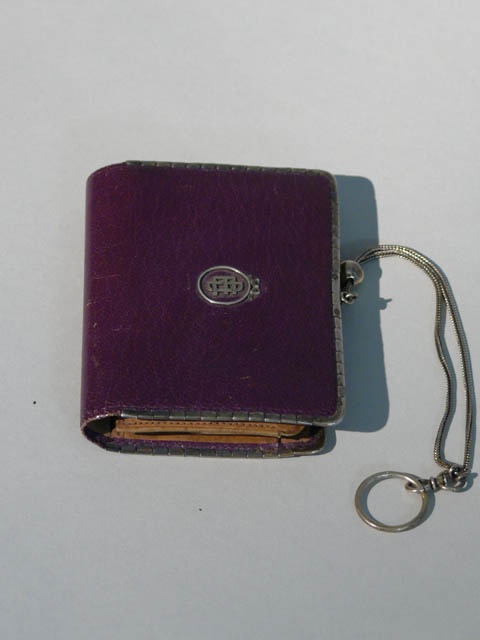 MINIATURE LEATHER HANDBAG BURGUNDY WITH SILVER INITIALS AND SILVER EDGE ON CHAIN HANDLE 11CM