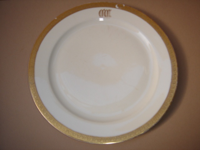 MINTON WHITE CHINA DINNER PLATE WITH A WIDE GOLD RIM