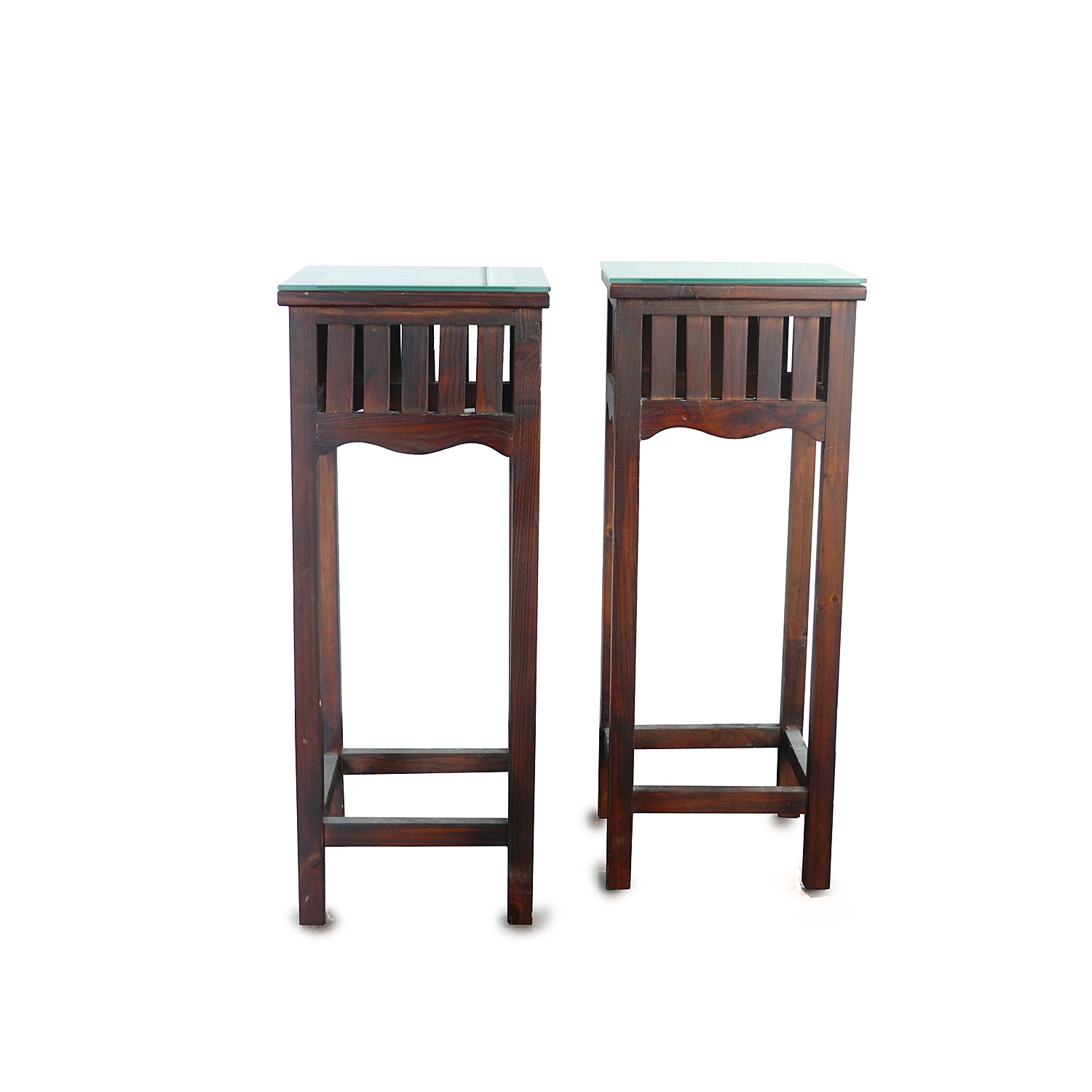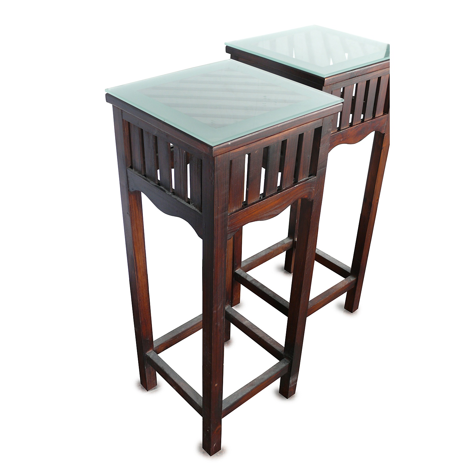 MODERN BEDSIDE TABLE WITH SLATTED APPRON AND A GLASS TOP 77 CM HIGH 30 CM WIDE 30 CM DEEP (X2)