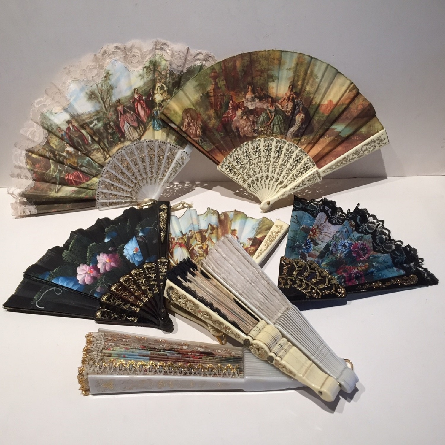 MODERN FABRIC / LACE FAN WITH PLASTIC STICKS AS LISTED