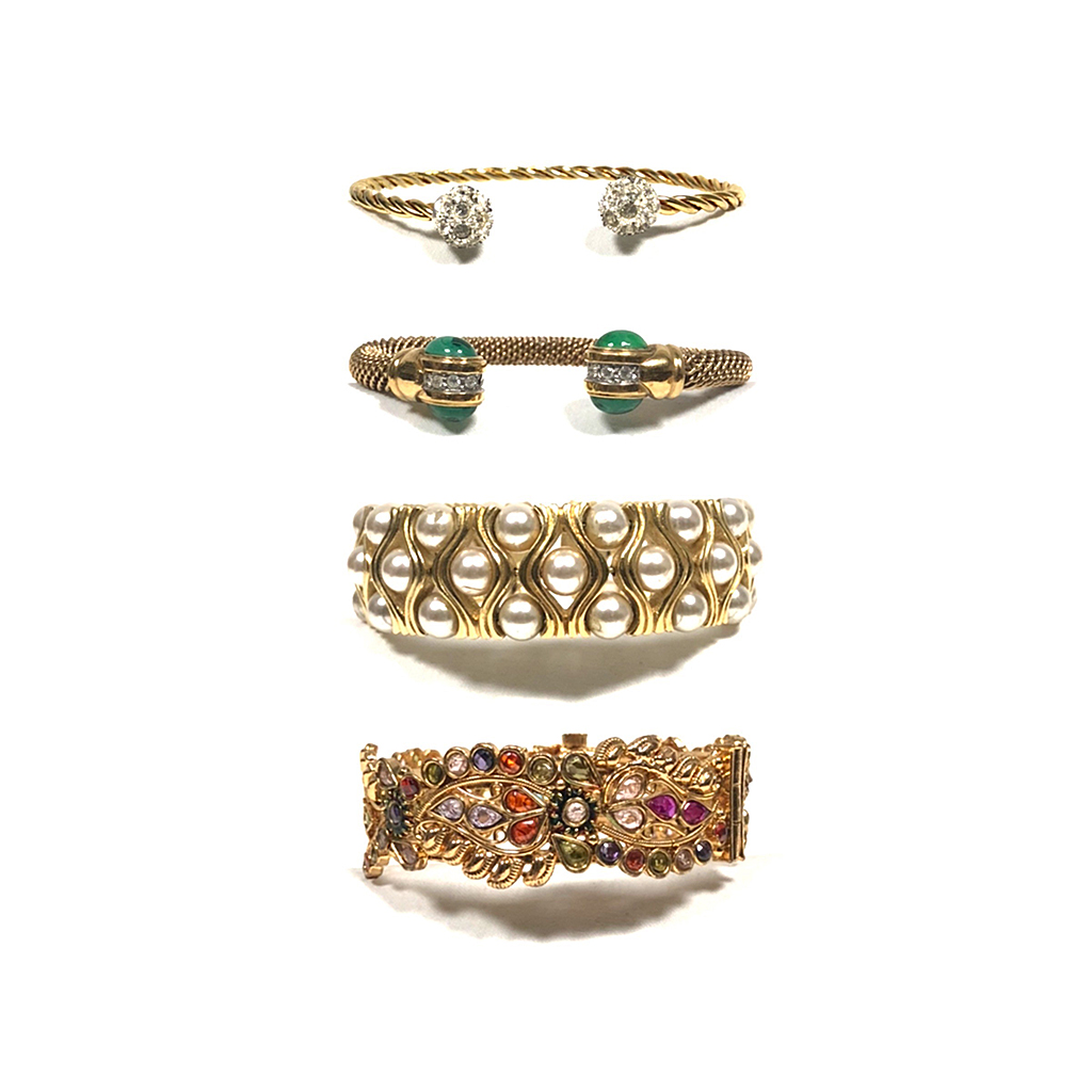 MODERN DECORATIVE GILT AND PASTE / PEARL BANGLE AS LISTED