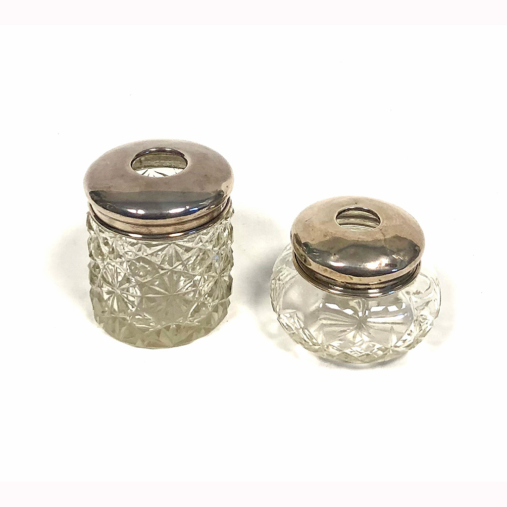 MOLDED GLASS HAIR RECEIVERS WITH SILVER LID AS LISTED