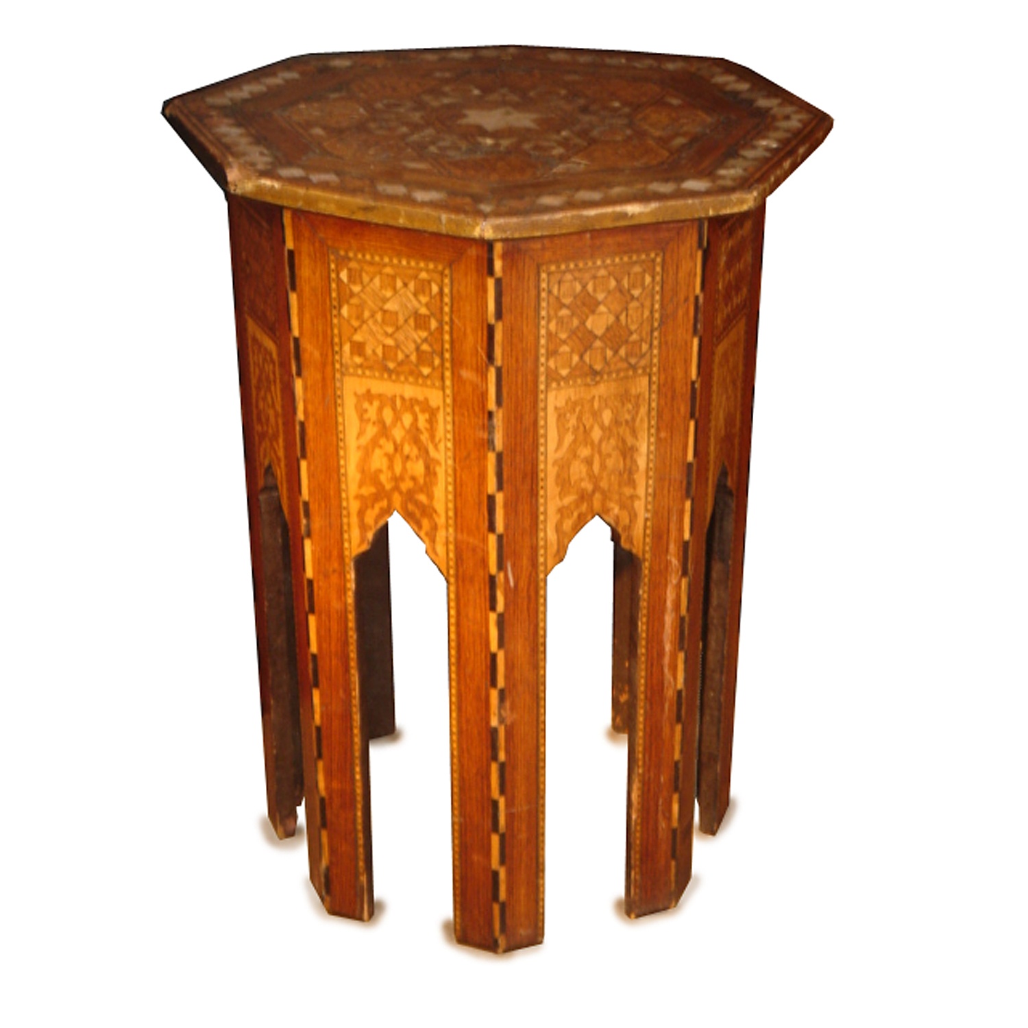 MOROCCAN PEARL INLAID PALE WOOD HEXAGONAL TABLE 18/i WIDE
