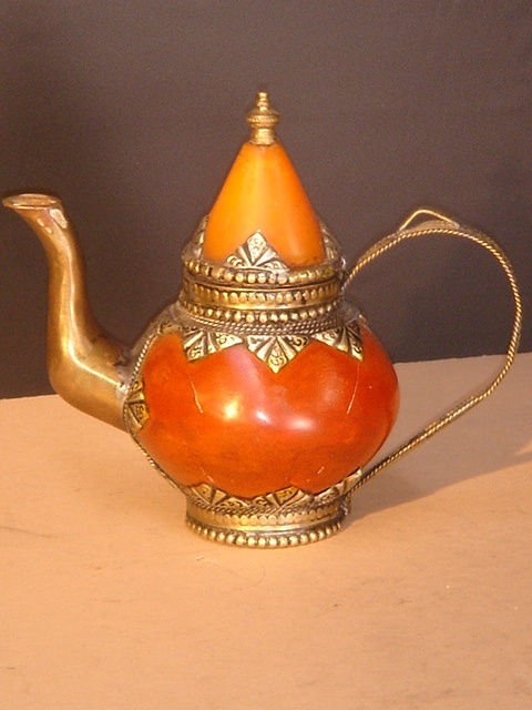 MOROCCAN SMALL AMBER STONE AND SILVER MOUNTED COFFEE POT